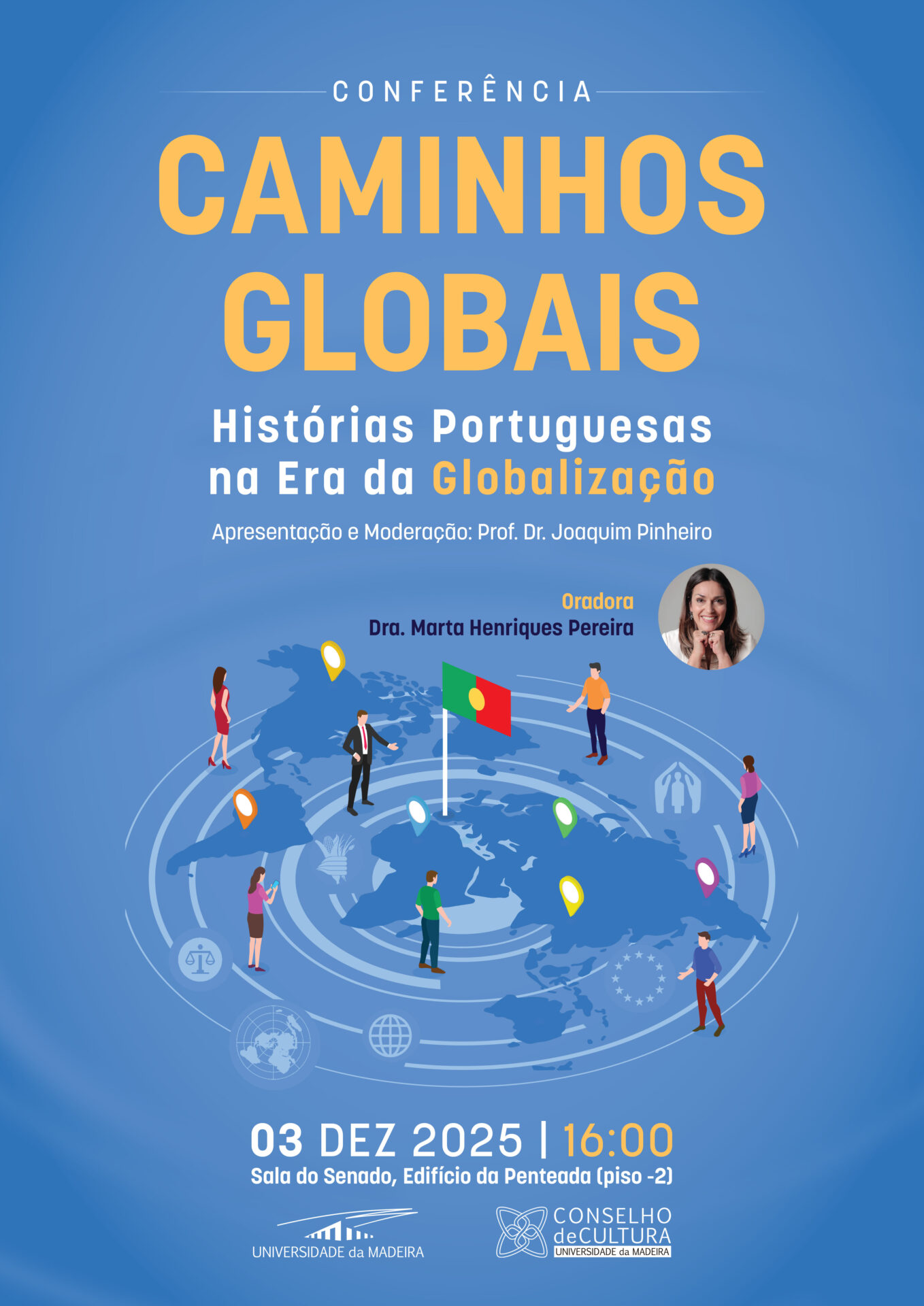 A conferência será proferida por Marta Henriques Pereira, especialista em políticas públicas, diplomacia, governação, paz e segurança, com mais de duas décadas de experiência internacional e autora do livro Caminhos Globais. Portugueses que fazem a diferença pelo mundo. A apresentação e moderação estarão a cargo do Professor Doutor Joaquim Pinheiro, docente da Faculdade de Artes e Humanidades da Universidade da Madeira.