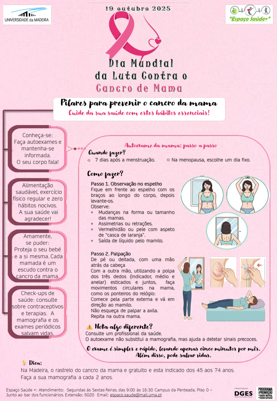 Na Madeira, o rastreio do cancro da mama é gratuito e está indicado dos 45 aos 74 anos. Faça a sua mamografia a cada 2 anos.