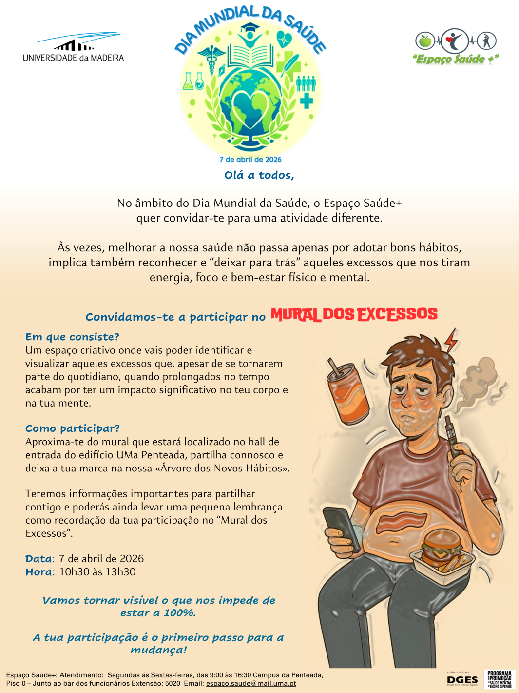 Teremos informações importantes para partilhar contigo e poderás ainda levar uma pequena lembrança como recordação da tua participação no “Mural dos Excessos”.