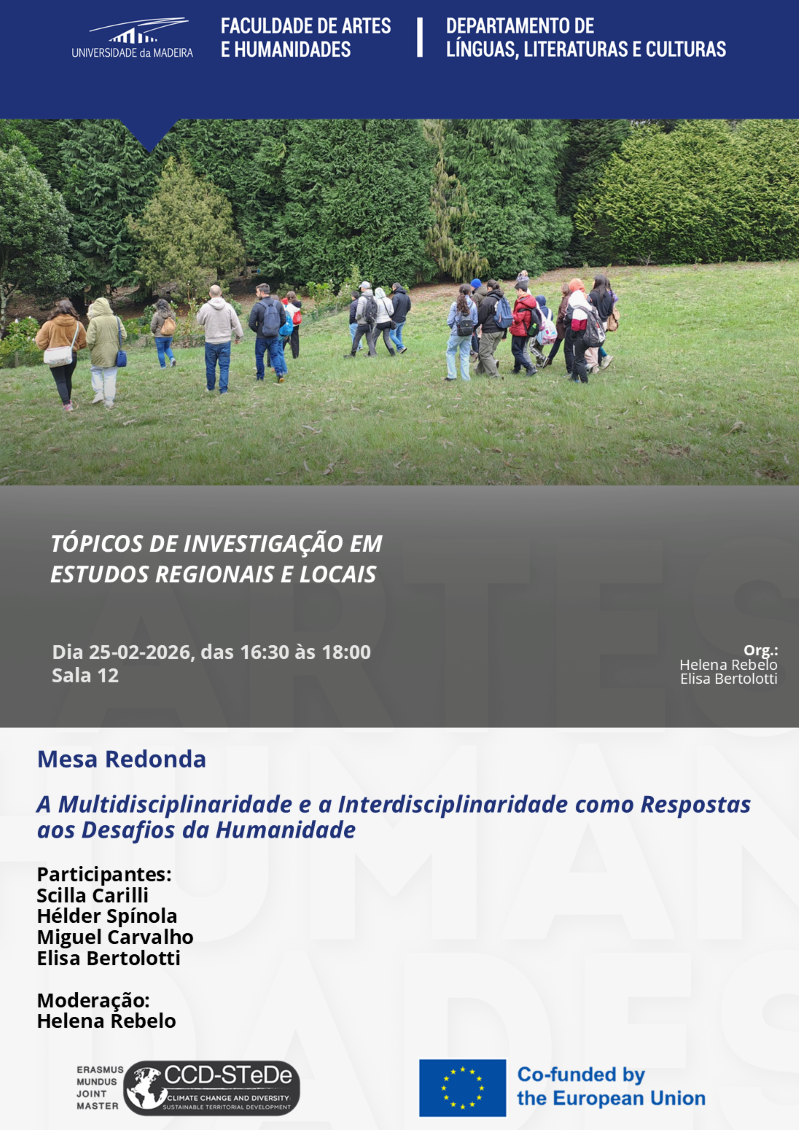 A mesa redonda vai decorrer presencialmente (na Sala 12, no Campus Universitário da Penteada), das 16h30 às 18h00, e contará com a participação de Scilla Carilli, Hélder Spínola, Miguel Carvalho e Elisa Bertolotti. A moderação vai estar a cargo de Helena Rebelo.