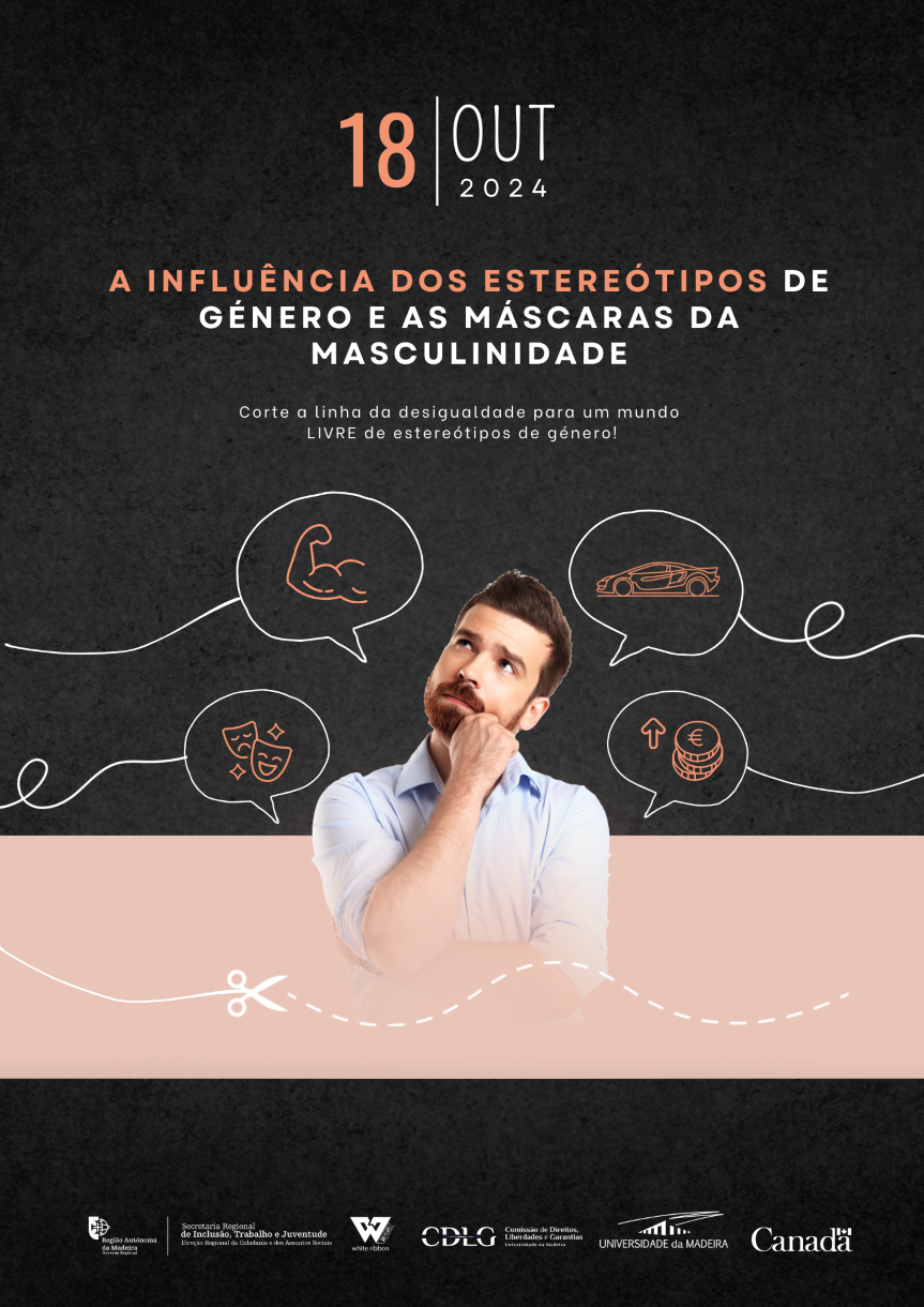 A Comissão para a Igualdade e a Inclusão da Universidade da Madeira (UMa), em parceria com a Secretaria Regional da Inclusão, do Trabalho e da Juventude, a Embaixada do Canadá, a ONG White Ribbon, a UMAR-Madeira e a Associação Presença Feminina, promove a conferência “A Influência dos Estereótipos de Género e as Máscaras da Masculinidade”, no dia 18 de outubro, com o objetivo de contribuir para o corte da linha da desigualdade para um mundo livre de estereótipos de género.