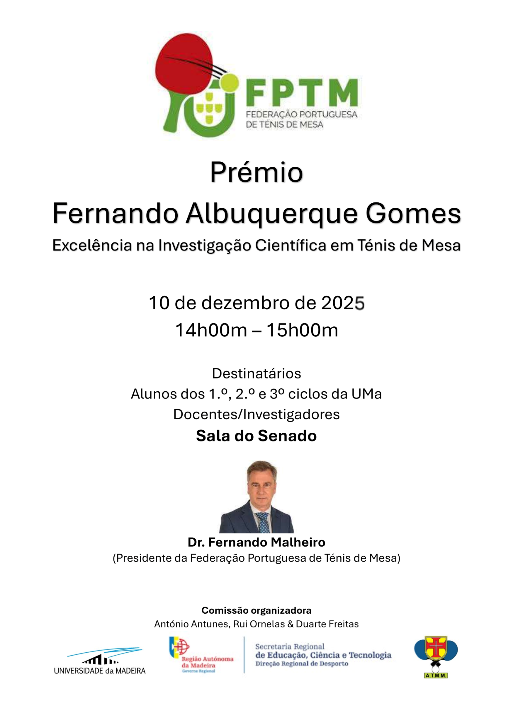 Sessão Pública: Prémio Fernando Albuquerque Gomes – Excelência na Investigação Científica em Ténis de MesaData de publicação: 04/12/2025
